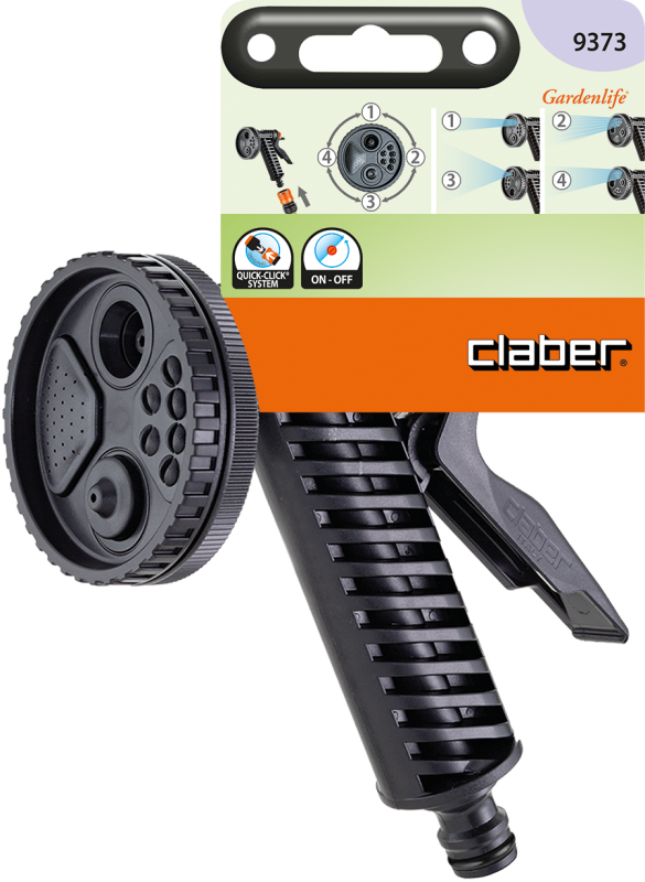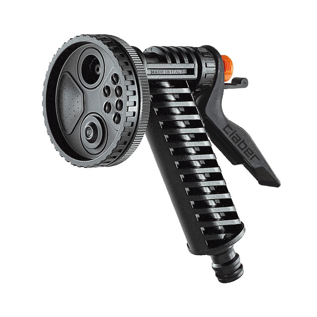 Univerzálna zavlažovacia pištoľ je vybavená nástavcom so štyrmi tryskami, so sústredeným prúdom, rozstrekom pre kropenie, rozprašovačom a tryskou s perlátorom. Voliť je možno jednoduchým pootočením koncovky na pištoli. Vďaka praktickému ovládaniu spúšte možno vodu jednoducho zapínať a vypínať. Pištoľ je vybavená ergonomickým držadlom s jednoducho ovládateľnou plynulou reguláciou prítoku vody. Vhodná pre polievanie alebo vonkajšie upratovanie.